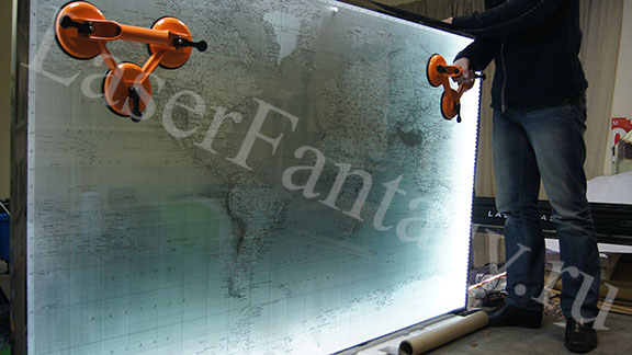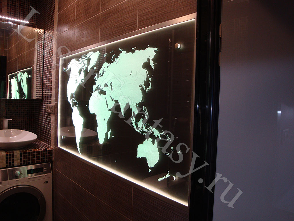 Дизайн карты Мира. Стекло на подсветке. 2400х1230х10мм. -