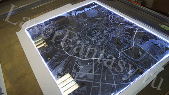 Карта Москвы. Карта России. Карта Мира. 1415х796х8мм - стекло прозрачное. -