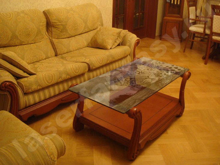 Журнальный столик. Лазерная гравировка стекла. Стекло металлизированное. Интерьер квартиры -