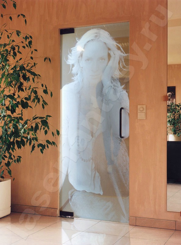 Офисные перегородки. Ума Турман. Панно из стекла. Лазерная гравировка на стеклянных перегородках. Лазерная гравировка фото на стекле. Стекло закаленное. Гравировка на стекле больших размеров