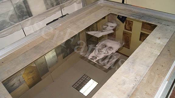Гравировка портретов 470х650 мм на бронзовом стекле с титановым напылением ( 940х2210х6 мм) Александров и Орлова -