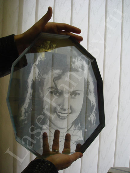 Лазерная гравировка на золотом зеркале: портрет и табличка. Изображение и текст любые -