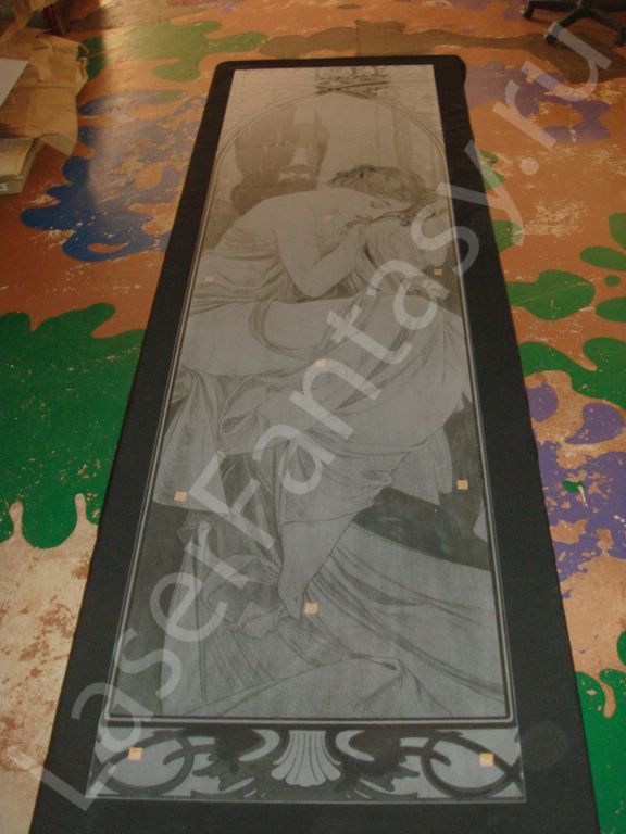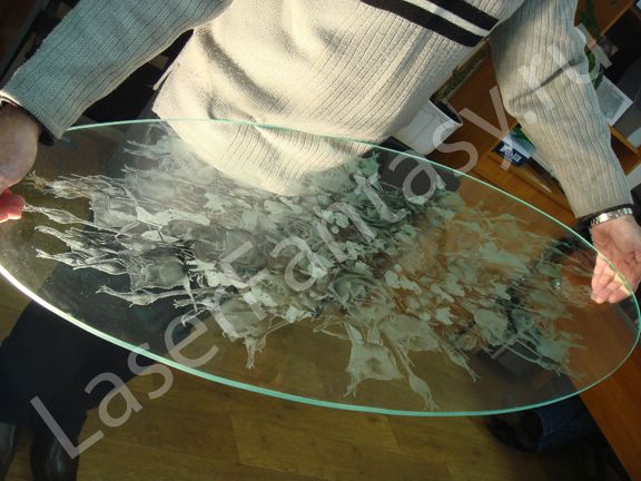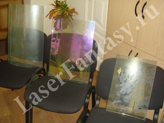 Лазерная гравировка на стекле лакобель. Цвета разнообразные -