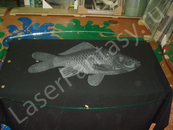 Рыба на стеклянной столешнице. Гравировка. Оформление любых столов и столешниц -