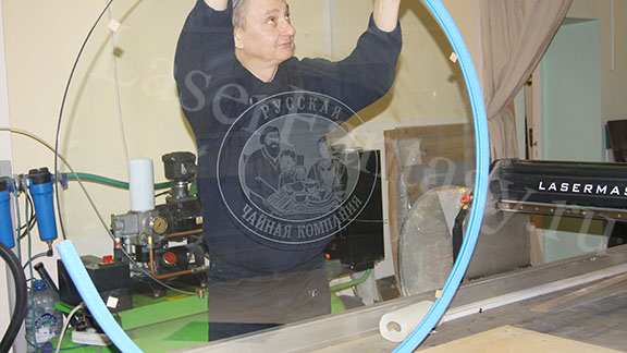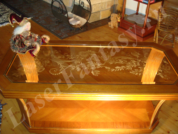 Стеклянная столешница с гравировкой. Лазерная гравировка на бронзовом, тонированном в массе стекле. Производство Москва -