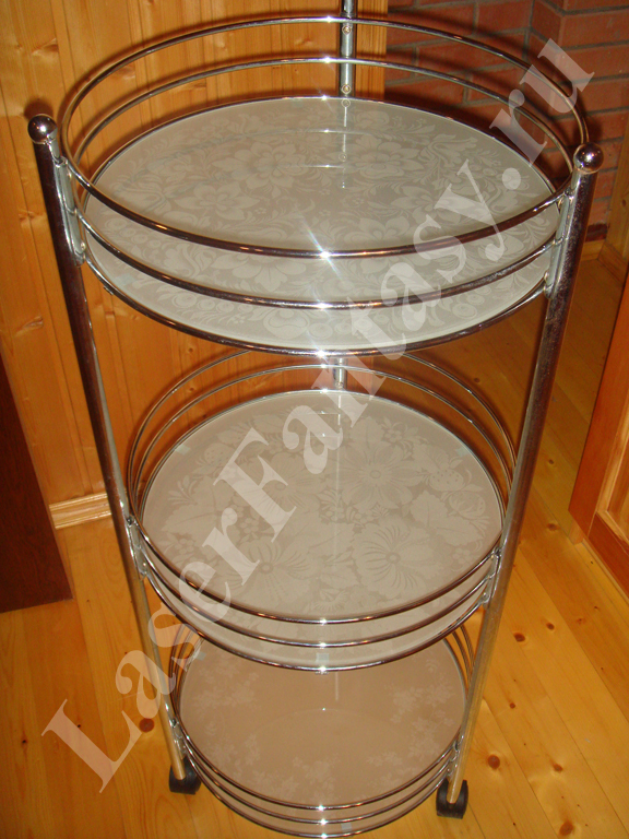 Столик для косметики. Столик передвижной. Гравировка на стекле. Стекло сатинато -
