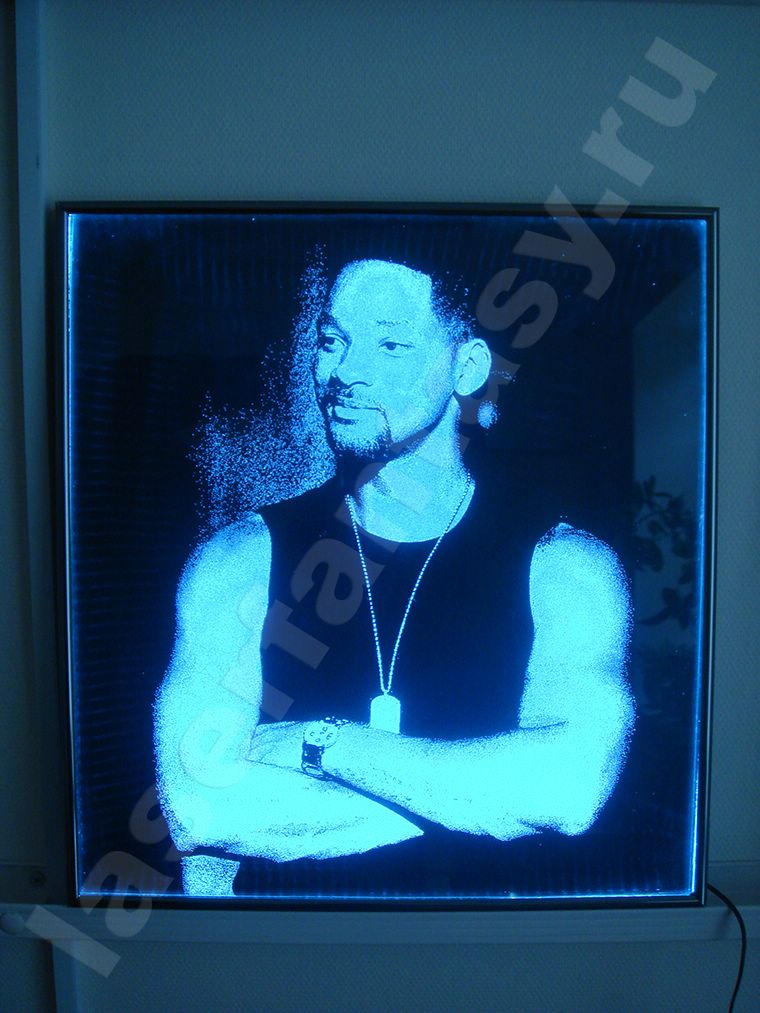 Уил Смит. Лазерная гравировка фото на стекле. Торцевая подсветка. Гравировка портрета на стекле с подсветкой -