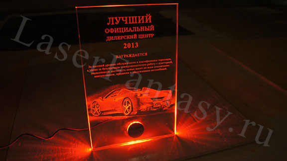Дипломы из стекла с лазерной гравировкой. Подсветка красная: 200х300х8мм -