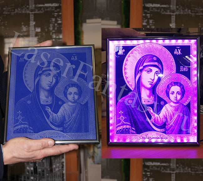 Икона на стекле с подсветкой, в раме. Лазерная гравировка. 230х270х8мм. -