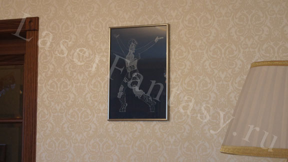 Фото на черном стекле в цвете. Цветная гравировка. Цветное изображение. -
