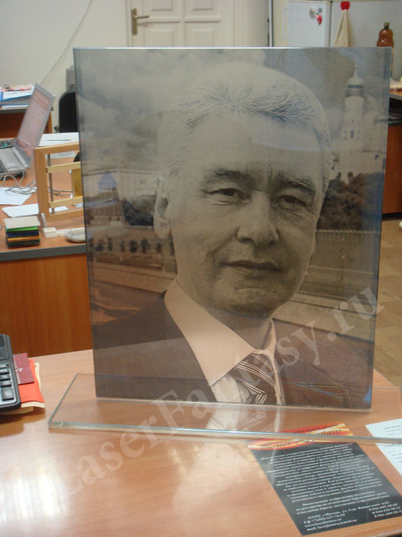 Кристалл. Оформление памятников. Лазерная гравировка на стекле. Фото внутри кристалла. (300х400мм) -