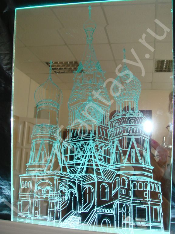 Московский кремль на зеркале. Графическое изображение. Гравировка + подсветка. Выполняем гравировку на разных материалах: стекло, зеркало, камень, дерево, кожа и т.д. -