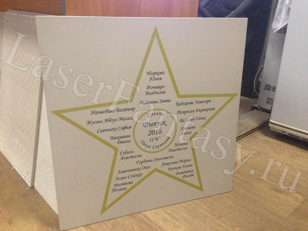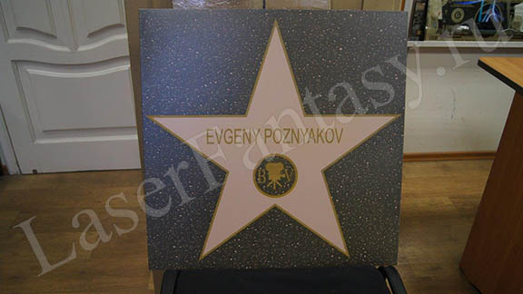 Гравировка в цвете. Звезда в подарок. Презент. 600x600x10 мм. -