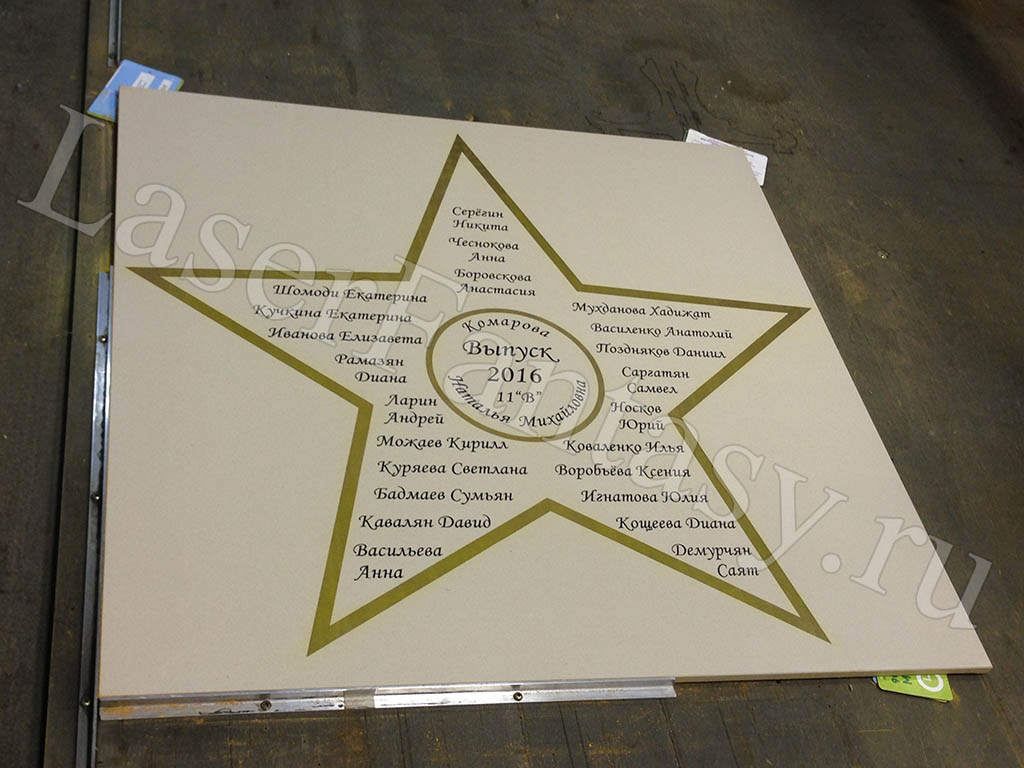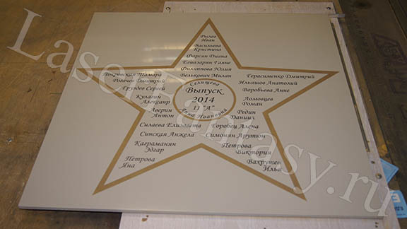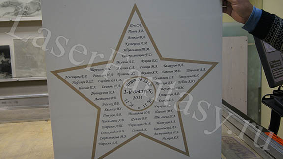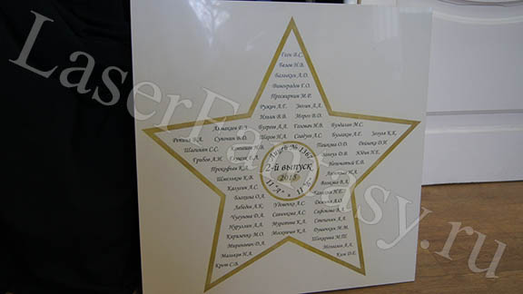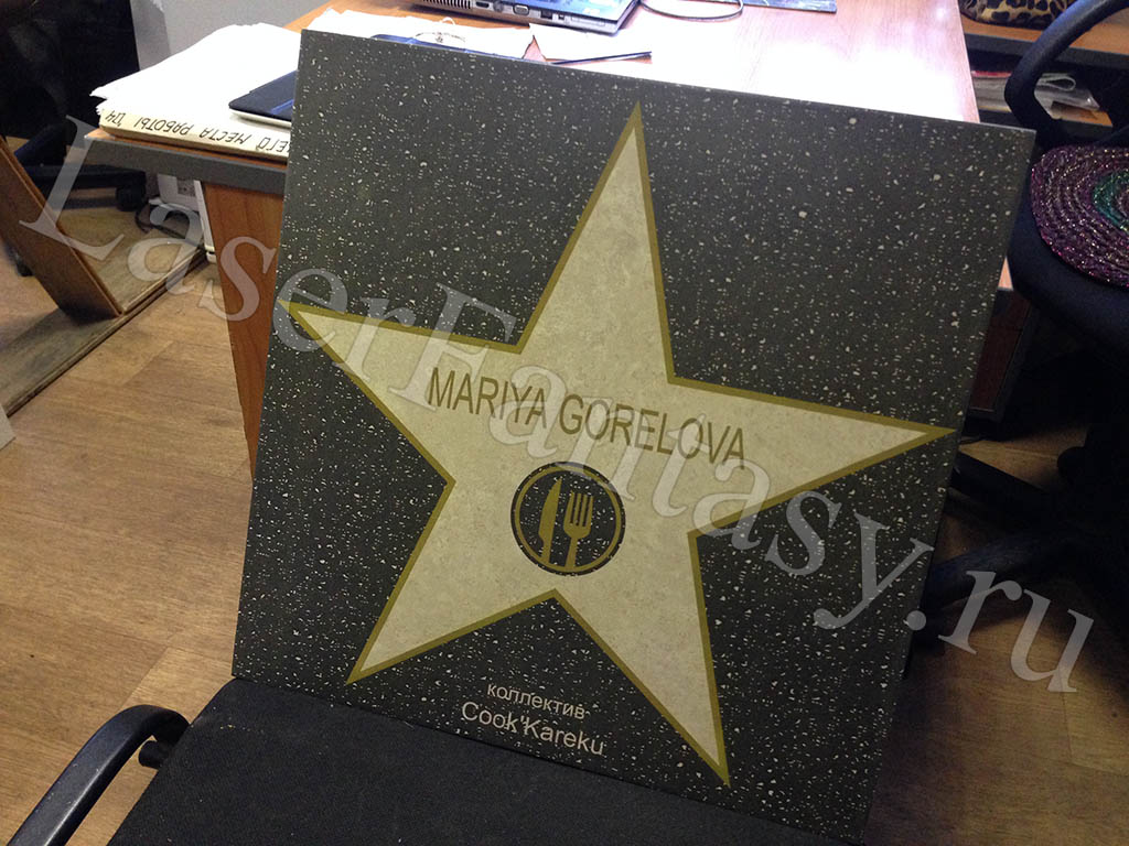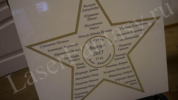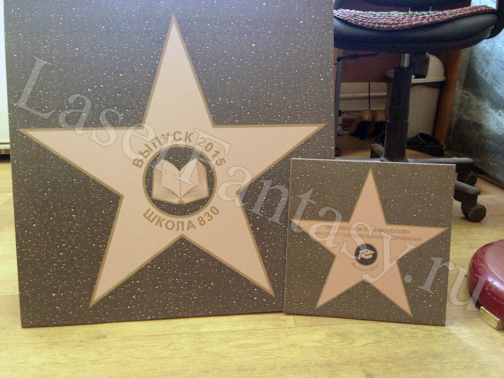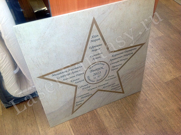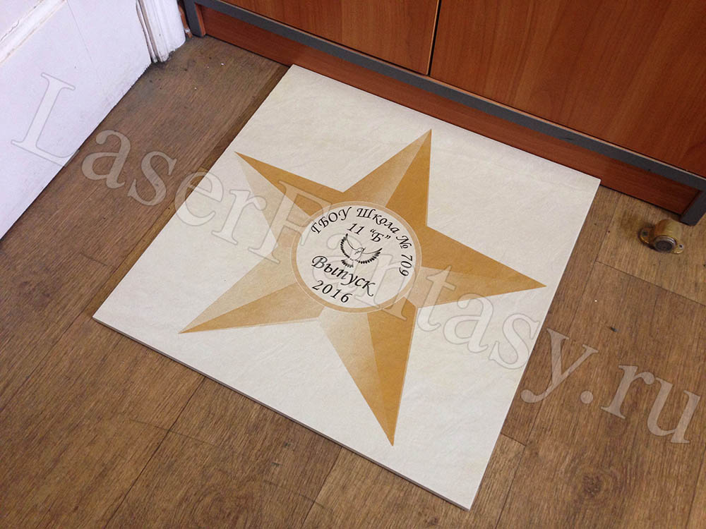 Керамогранит с цветной гравировкой звезды для выпускников школы. -